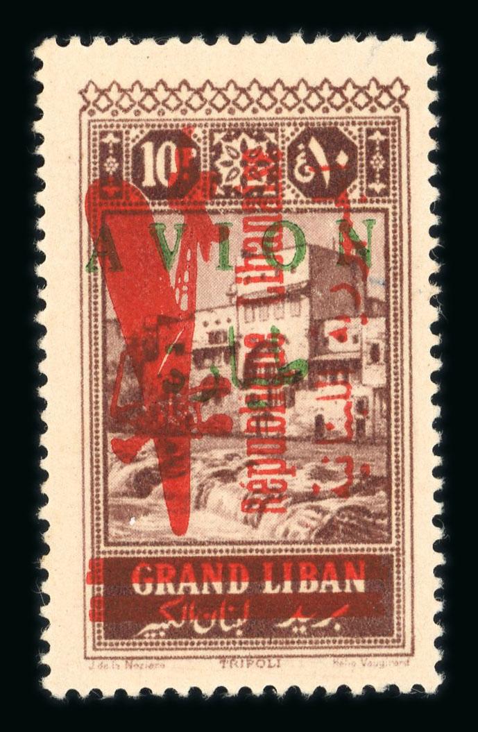 1928, Grand Liban (Poste aérienne) PA n°35a brun-lilas (surcharge apposée sur la PA12) neuf* TB signé Calves. Cote 890€.
