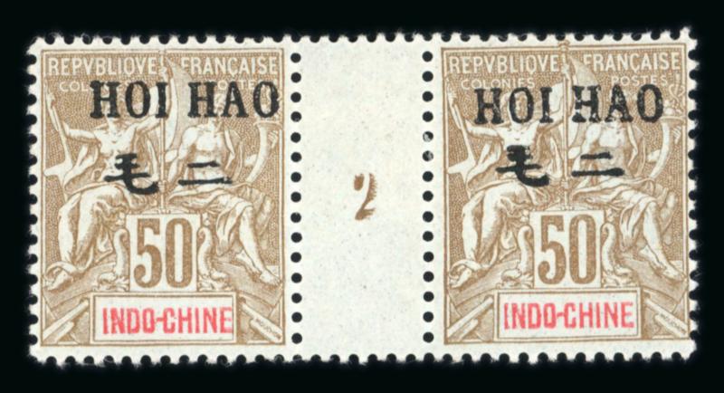 1931, type Gallieni 50cts brun-rouge Y&T n° 184, un bloc de 30 timbres avec variété piquage à cheval + une feuille de 50 avec les 10 timbres du bas dentelés sur trois côtés seulement + une feuille de 50 non dentelés, timbres tous neufs ** MNH, peu commun et TB.