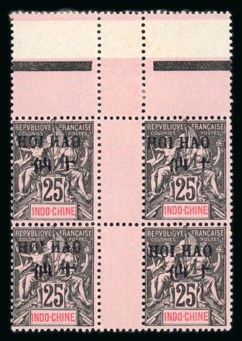 1901, Sage Y&T n° 22A, 25c surchargé, oblitéré sur petit fragment, très rare surcharge noire et très beau cad 21/04/1901 de Pekin, pièce que nous considérons comme un des plus beaux fleurons de la philatélie des Colonies Françaises, B/TB et signé Calves.