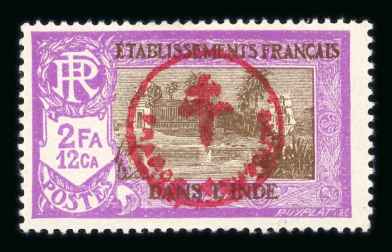 1940, 2f25 Outremer Y&T n° 207a surcharge renversée à cheval neuf *, TB, signé Roumet et Scheller cote €500.