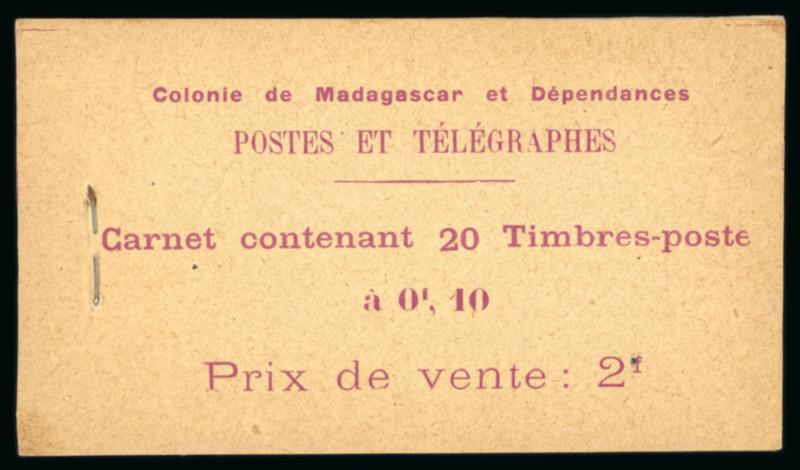 Madagascar, 1919: stock de 20 carnets de 20 timbres Y&T n°133 à 0f10, tous neufs **, cote > 5'400€, TB.