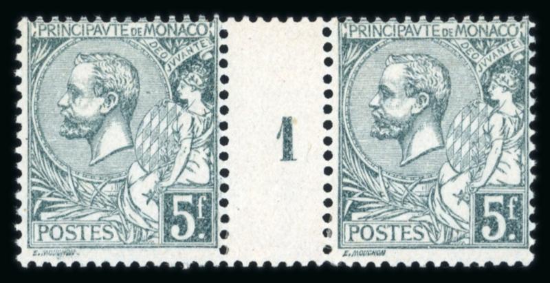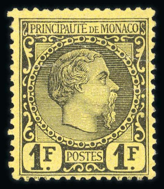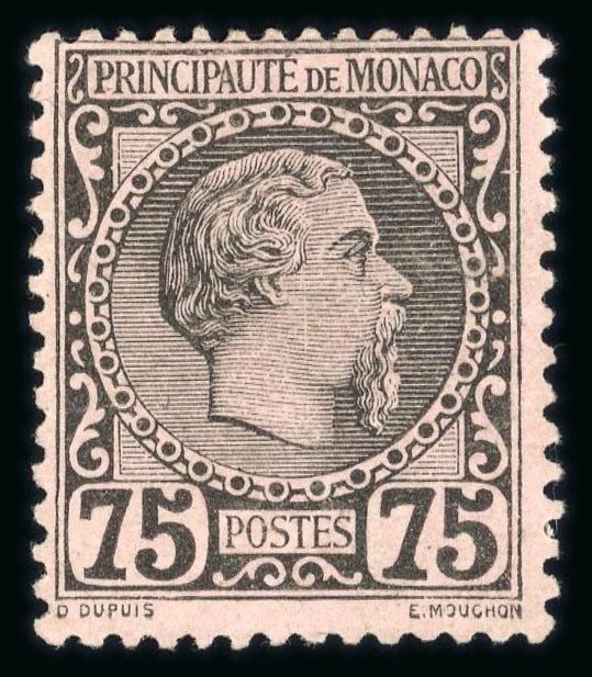 1885, Monaco n°10 5fr neuf * avec gomme altérée. Signé Brun, Calves et certificat Diena (2021). Cote 4'500€.