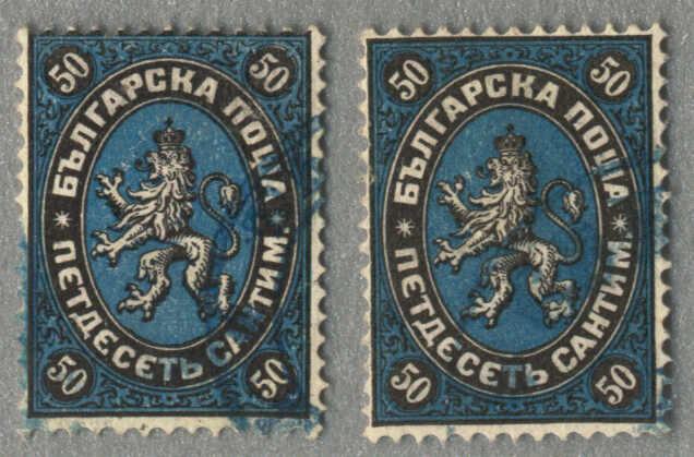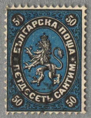 1879, 50c., black and blue, used, laid paper, perf. 14 1/2 x 15, beautiful early classic stamp of Bulgaria, VF-XF! Estimate 120€.