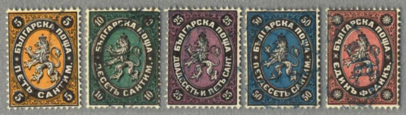 1879, 5c.-1fr, full set of (5), used, perf. 14 1/2 x 15, laid paper, beautiful early classic Bulgaria stamps, VF-XF! Estimate 400€.