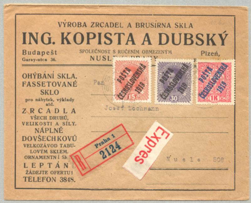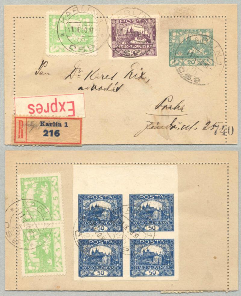 1919, interesting mixed franking Hradcany, on rare registered express letter stationary, very fresh and attractive, XF! Estimate 1.200€.