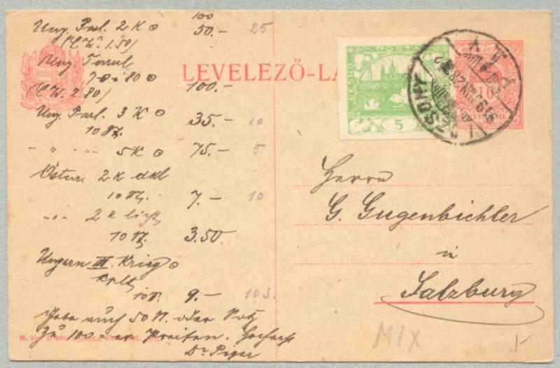1919, interesting mixed franking Hradcany with former Austrian/Hungarian issues, on stationary uncharged, very fresh and attractive, XF! Estimate 450€.
