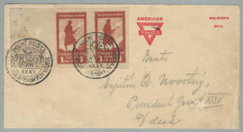 1919, from SPRAVA POLNI POSTY to Grant, addressed to Captain A Novotny, founder of the Legion Field Post Office system, Czechoslovak military mail in Siberia, franked with two brown 1k VOJENSKA POSTA issues inscribed CESKOSLOVENSKE VOJSKO NA RUSI, tied by two strikes of POLNI POSTA PRESIDENT GRANT X