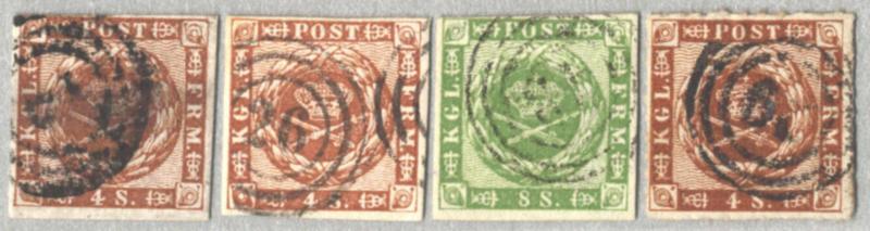 1858, small lot of (4), 3x imperf, 1x rouletted, cancelled 3-ring 26, 6, 43, interesting and desirable, F-VF! Estimate 140€.