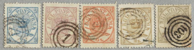 1864, 2-16 S, complete set of (5), perf 13:12 1/2, cancelled 3-ring 34, 1, 57, 1, 103, fresh, VF-XF! Estimate 360€.