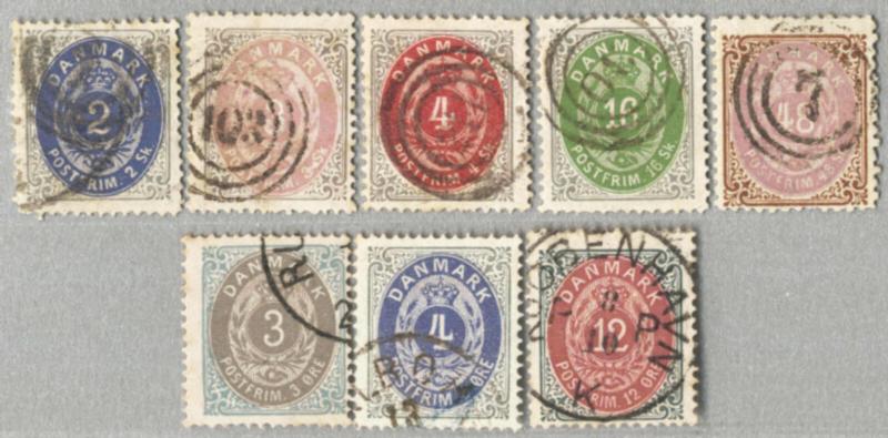 1870-5, small lot of (8) from 2 sets, cancelled 3-ring 103, 7, 30, CV 550€, interesting and desirable, VF-XF! Estimate 550€.