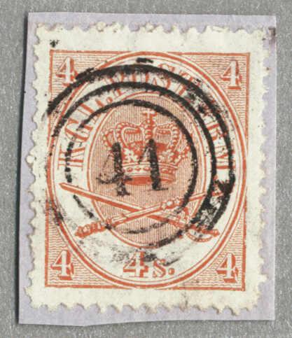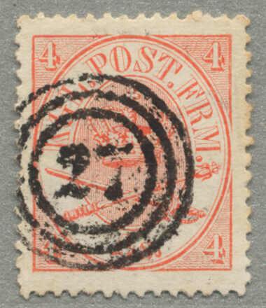 1864-70, 4 Skill, pale red, ring cancel 27 of HOBROE, fresh, XF! Estimate 60€.