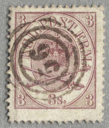 1865, 3s., lilac, perf 13 x 12 1/2, used, wmk Crown II, with black triple circular cancel 56 (Ringkjobing), magnificently fresh and desirable, XF-SUP! Estimate 160€.