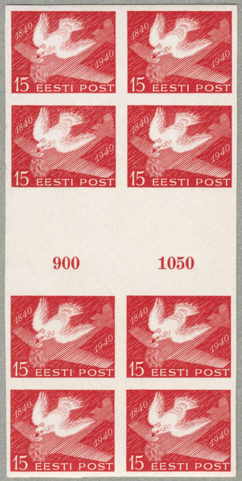1940, 15s, block of (8) with center gutter, imperf, white paper, LPOG never hinged, excellent condition, VF-XF! Estimate 150€.