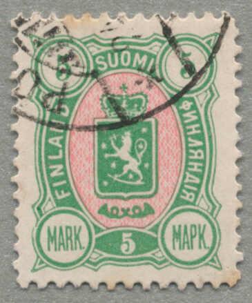 1885, 5 mark, green/red, used PO..., some toning spots, F-VF! Estimate 320€.