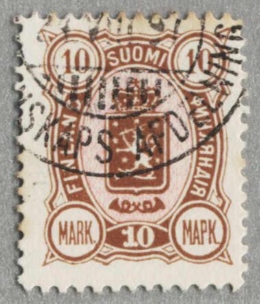 1889-00, 10 M, brown/anilinerose, used, fresh and desirable key value, XF! Estimate 100€.