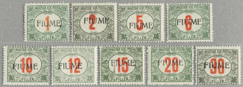 1918, 1f-30f, set of (9), including typographed and handstamp overprints, lot includes also 30 filler typograph type too, very rare and desirable, VF-XF! Estimate 1.200€.