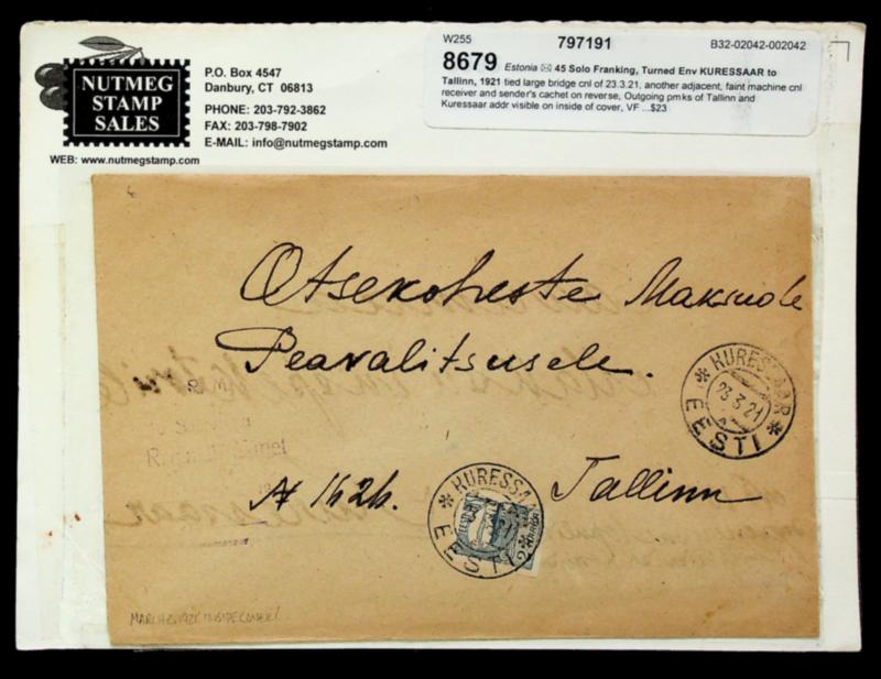 Estonia 1921 2k on cover from Kuressaar to Tallinn