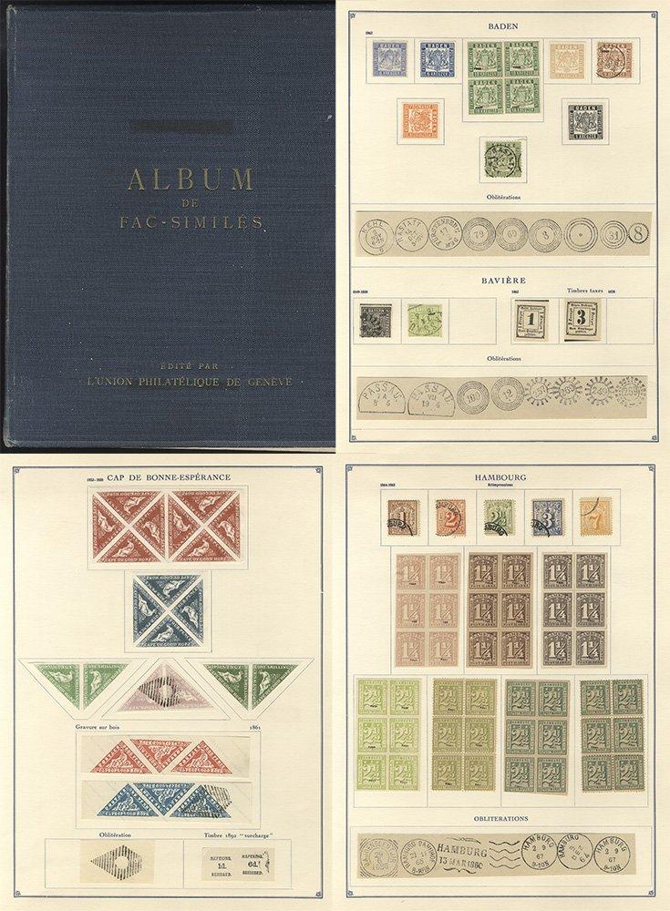 FOURNIER FORGERY ALBUM No 423 containing approximately 3000 items all laid out on printed leaves comprising unused & U singles, multiples & many surcharges & cancels. Appears complete except for a handful of empty spaces, in blue binder with 'Album De Fac-Similes Edite Par L'Union Philatelique de Ge
