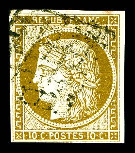 N°1, 10c bistre-jaune, belles marges, très frais. SUP (signé/certificat) Qualité: * Cote: 3200 euros