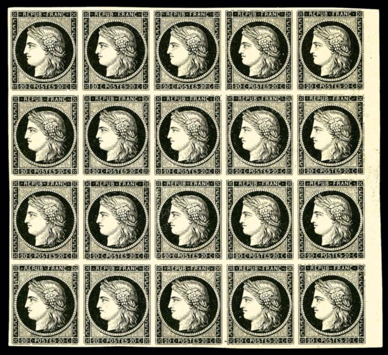 N°3, 20c Cérès: 100 exemplaires dont paires et neufs, nuances et oblitérations diverses, belle qualité, de nombreuses pièces choisies Qualité: Oblitéré