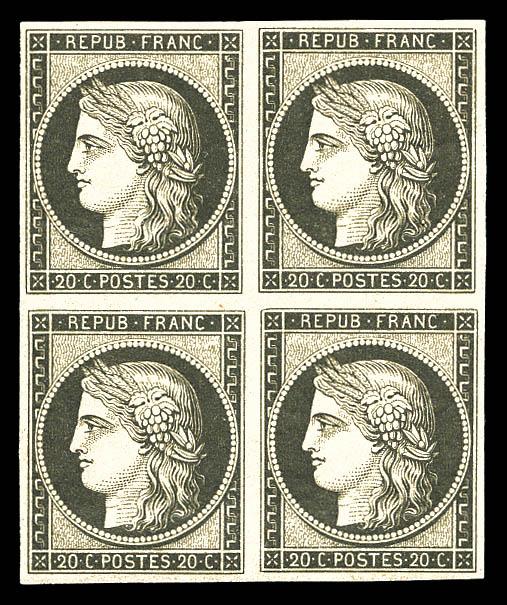 N°3f, 20c noir sur jaune impression de 1862 en bloc de quatre, fraîcheur postale, SUPERBE (certificat) Qualité: **