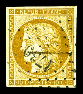 N°1, 10c bistre-jaune obl pc. TB (signé Scheller) Qualité: Oblitéré Cote: 365 euros