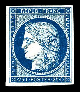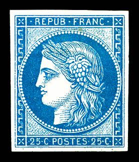 N°4, 25c bleu bleu-noir (très foncé), très jolie nuance, grande fraîcheur. SUPERBE. R.R. (signé/certificat) Qualité: * Cote: 9250 euros