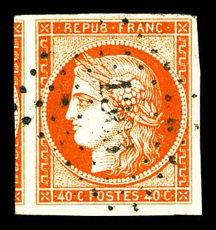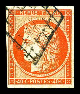 N°5b, 40c orange-foncé, belles marges avec voisin obl grille sans fin. SUP (signé Brun/certificats) Qualité: Oblitéré Cote: 700 euros