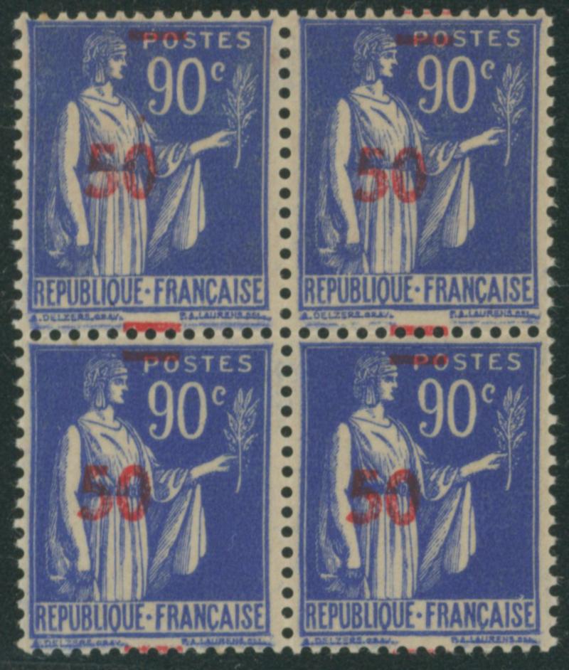 France 1940-41 50c on 90c block of four, shifted print unused