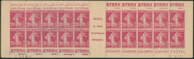 France Sower ad. bklt. 20c * 20 unused