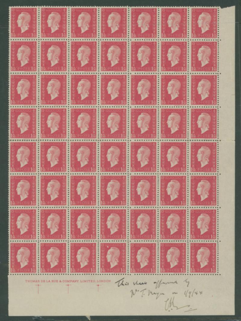 France 1944 1.5fr SE corner block of 56 unused full original gum,