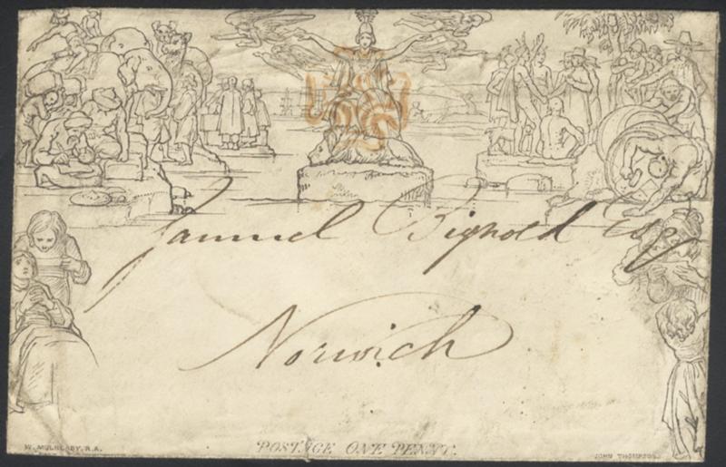 One Penny Envelope 'A153' to Norwich, cancelled by a faint red MC, reverse with Yarmouth, Norfolk d/stamp for MY.22.1840 in black, small closed tear at base & appears rather aged and worn. Spec.ME2, Cat. £1200.