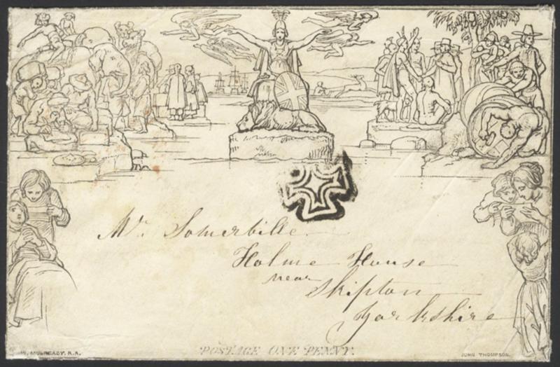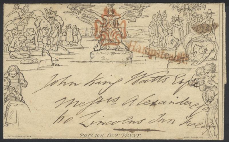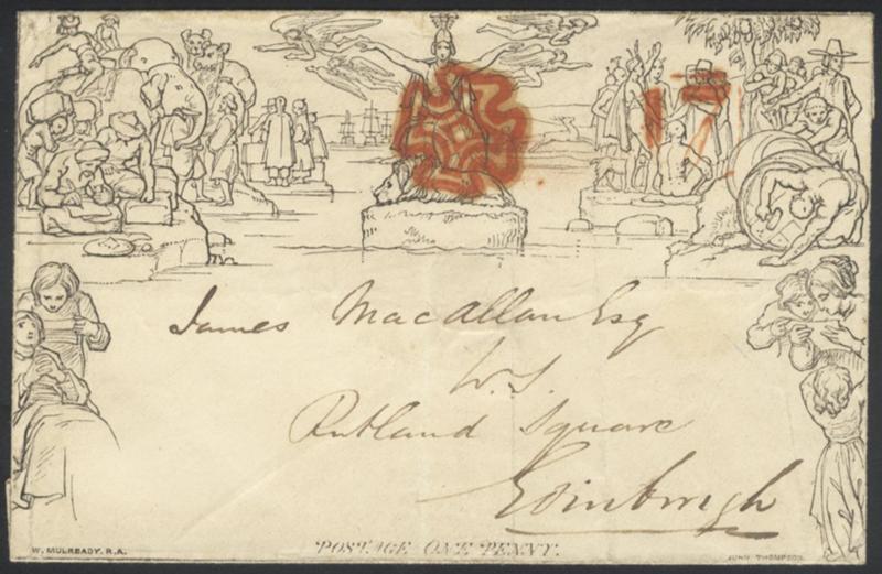 One Penny Envelope 'A180' from Glasgow to Edinburgh cancelled by a boldly struck red M.C reverse bears despatch d/stamp for JUN.18.1840 & arrival c.d.s. for 19th. Some creasing hardly detracts.