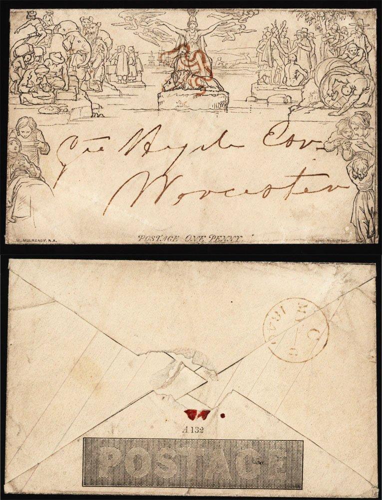 One Penny Envelope, Forme 1, Stereo 'A132', VFU example sent from London to Worcester, neatly cancelled by a red MC, b/stamped with crisp light London c.d.s. for the first day of issue MY.6.1840, light peripheral soiling, nevertheless a presentable example of this scarce FDC without any of the usual
