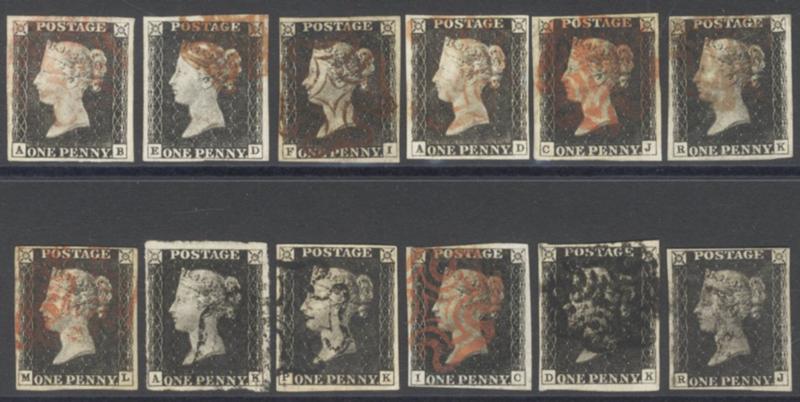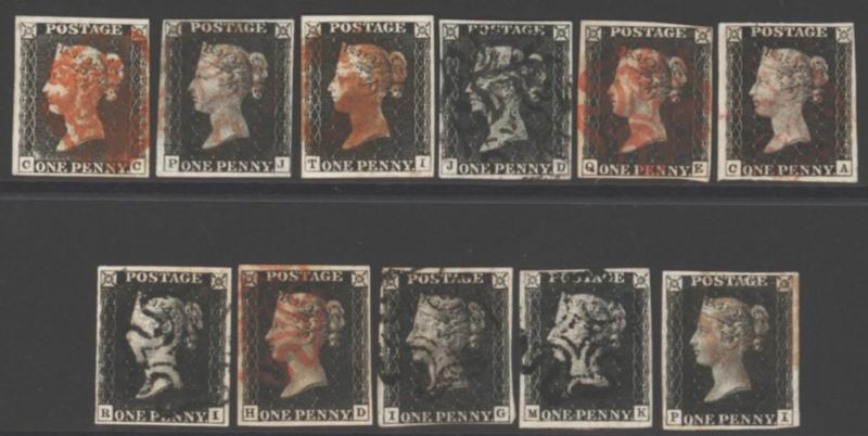 Plate 1a to 11 (12 diff Plates) all being four margined examples, generally fine, Pl.1a, 1b, 2, 3, 4, 5, 6, 7 & 9 cancelled in red, others in black. (12)