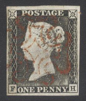 Plate 1a FH, grey black (worn plate), good to large margins, superb red centrally struck MC. (1)