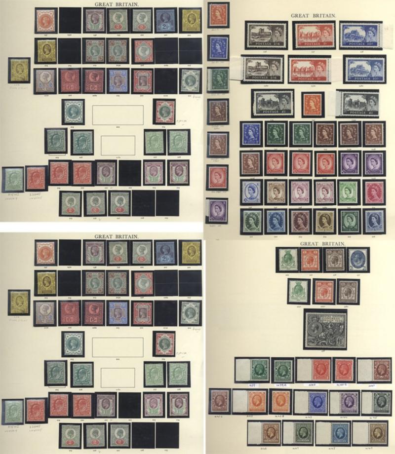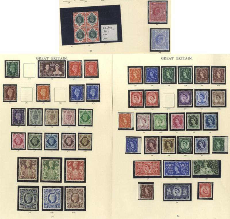 1902-1970 UM or M collection housed in black mounts in a Windsor album, highlights incl. 1902 KEVII 5s + 10s M, 1911 1s (SG.313) UM block of four, 1925 Wembley set M, 1937 Defin set UM, 1939 High Value set M, 1948 Wedding UM, 1952 Tudor set M, 1955 Edward Crown set M, later Wildings, ranges of most