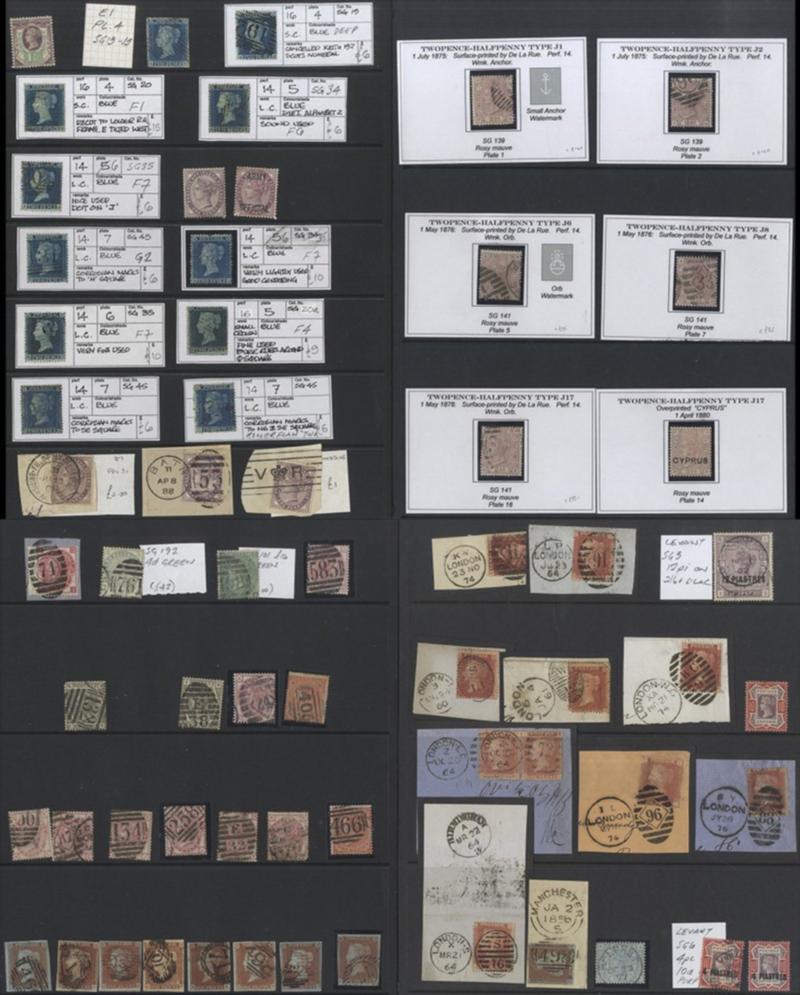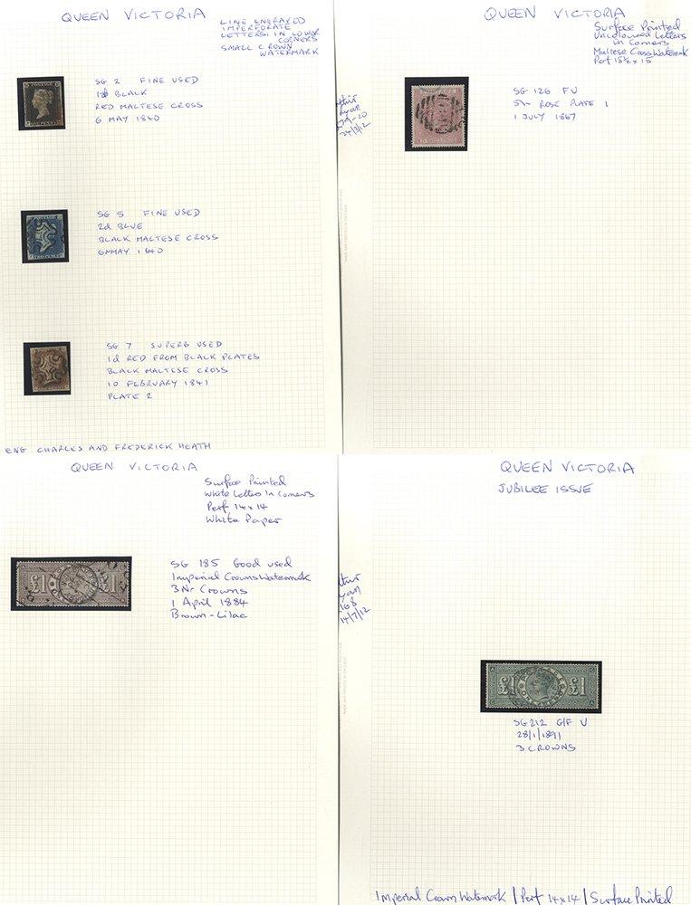 RANGE of 150 or so QV items on Hagners with four margin 1841 2d and 1d red imperfs (18) some with plate characteristics identified, 2d blue SG.19/20 & 34/5, some 1d Stars (incl. on piece), Jubilee ½d vermilion SPECIMEN, 1d McCorquodale 'dummy stamp,' a few Surface Printed incl. 2½d rosy mauve Pl.1 &