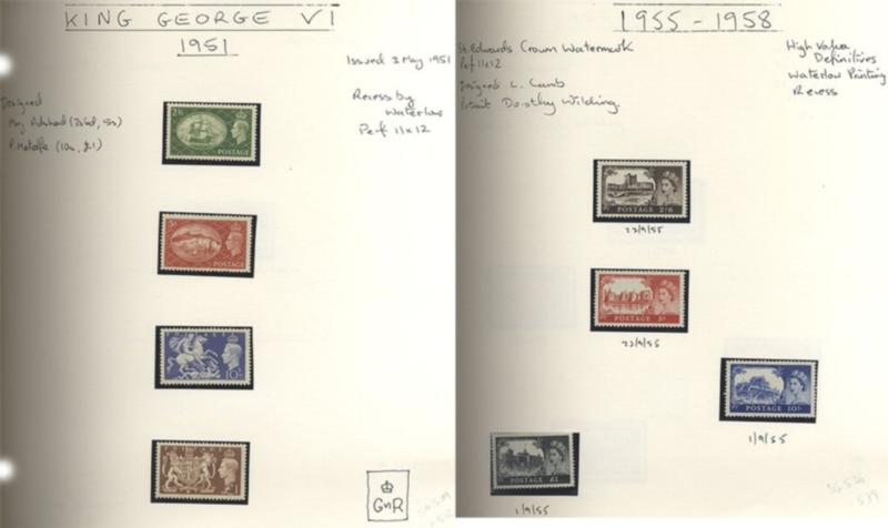 1936-1970 M (mostly UM) collection on leaves in a Devon album with KGVI incl. 1937 set, Wedding & Festivals (1939 high values FU c.d.s), Wildings incl. 1952 Tudors, 1955 Edwards unused and 1928-29 Graphites sets. Also Waterlow Castles unused and 2nd DLR set, with commems complete incl. phosphors.