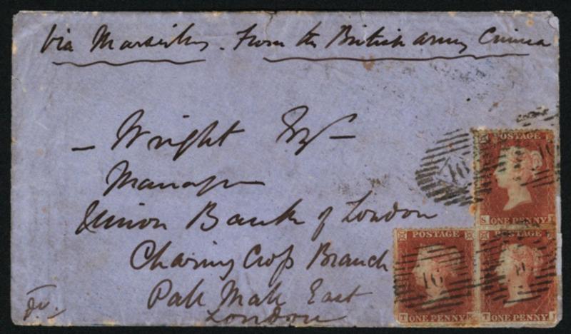 THE CRIMEAN WAR 1856 envelope with letter from Crimea to London headed 'Head Quarters British Army Sebastopol March 1st 1856,' non military content requesting bank account, from a Douglas Campbell with envelope to 'Manager Union Bank of London, Charing Cross Branch, Pall Mall East, London, endorsed