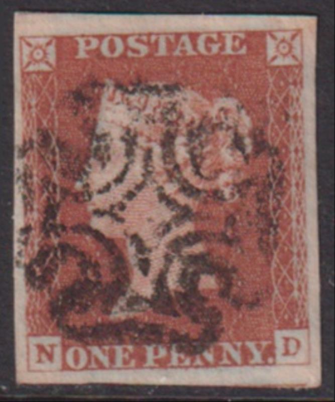 1841 1d red-brown (KK), imperf, almost 4 margins, black MC cancel. SG 8l. Cat £60. FU.