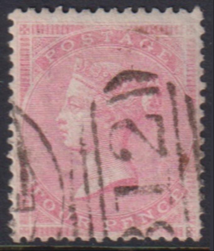 1857 4d rose no corner letters, wmk large garter. SG 66a. Cat £75. FU.