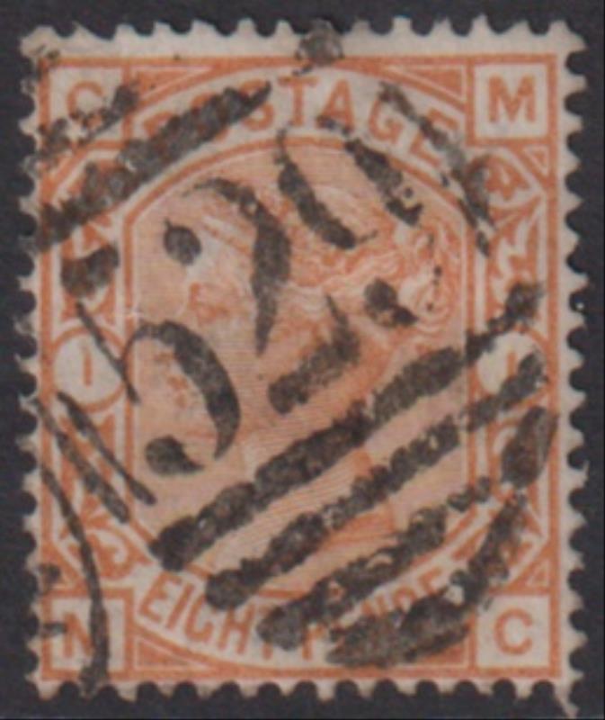 1876 8d orange, plate 1, large garter wmk. SG 156. Cat £190. GU.