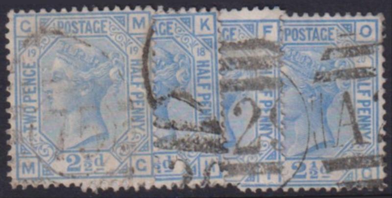 1880 2½d blue set of 4 diff plate numbers (17-20), orb wmk, #17 thinned & not counted in cv. SG 142. Cat £69. GU/FU.