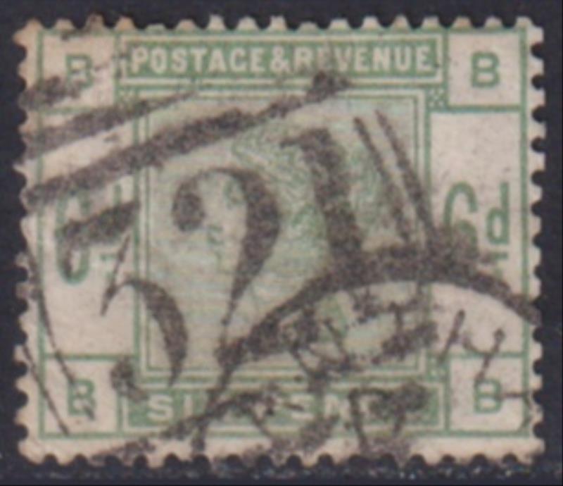 1884 6d dull green (BB). SG 194. Cat £100. GU (#321 duplex).