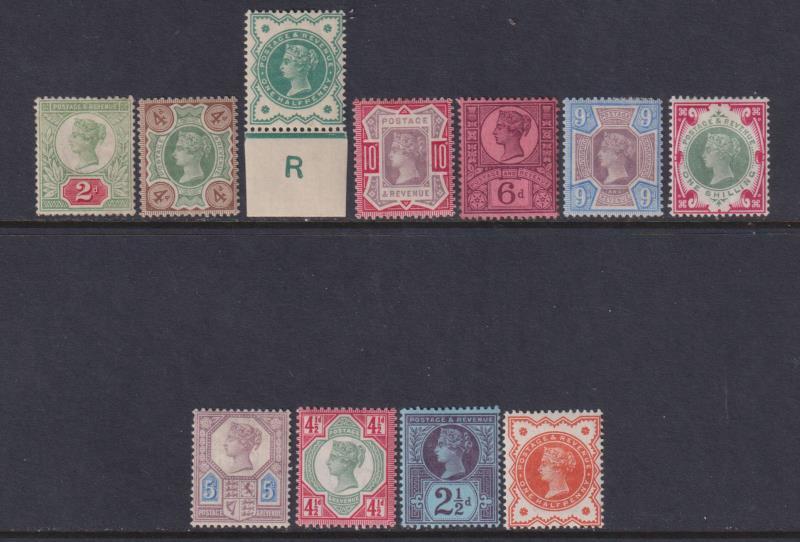 1887 ½d to 1/- Jubilee range of 11 diff singles, odd one odd blemish. SG 197-214. Cat approx £375+. Mint/MNG.