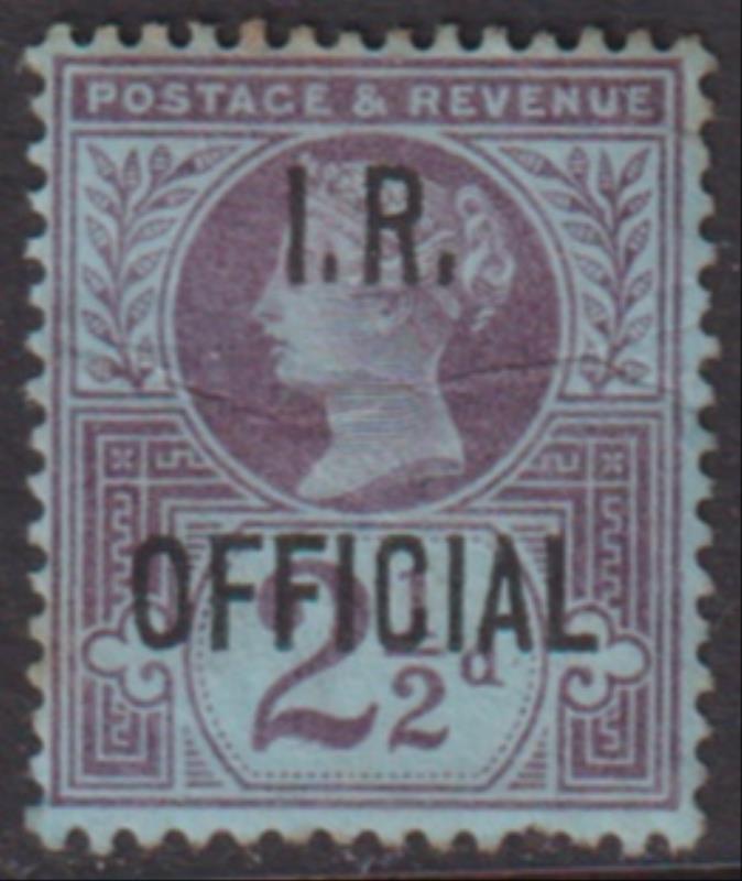 1885 ½d slate-blue, I.R. OFFICIAL ovpt. SG O5. Cat £20. FU.