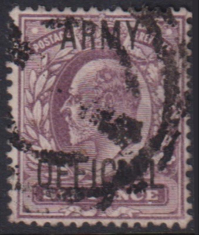 1902 6d EVII "ARMY OFFICIAL" ovpt, cert mark. SG O50. Cat £65. GU.