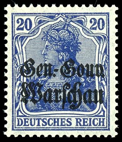 20 pfennigs. dark violet blue with overprint, mint never hinged, expertized Hey BPP, Michel 240.- (13d) 20 Pfennig. dunkelviolettblau mit Aufdruck, postfrisch, geprüft Hey BPP, Mi. 240.-