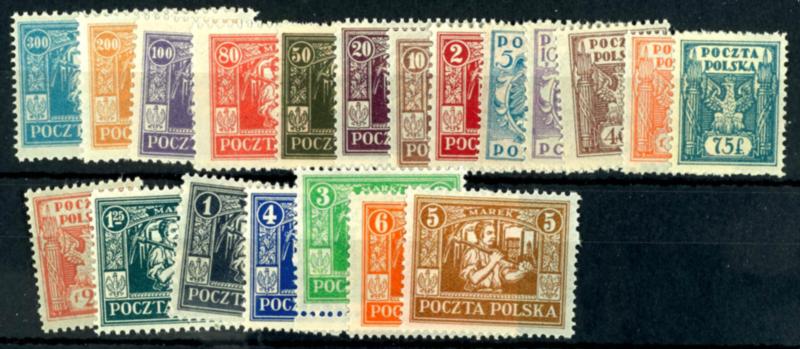 5 F. to 50 M. and 80 M. to 300 M. postal stamps, both sets - 20 values complete, perfectly mint never hinged, Michel 420.- (1/20) 5 F. bis 50 M. und 80 M. bis 300 M. Freimarken, beide Sätze - 20 Werte komplett, tadellos postfrisch, Mi. 420.-